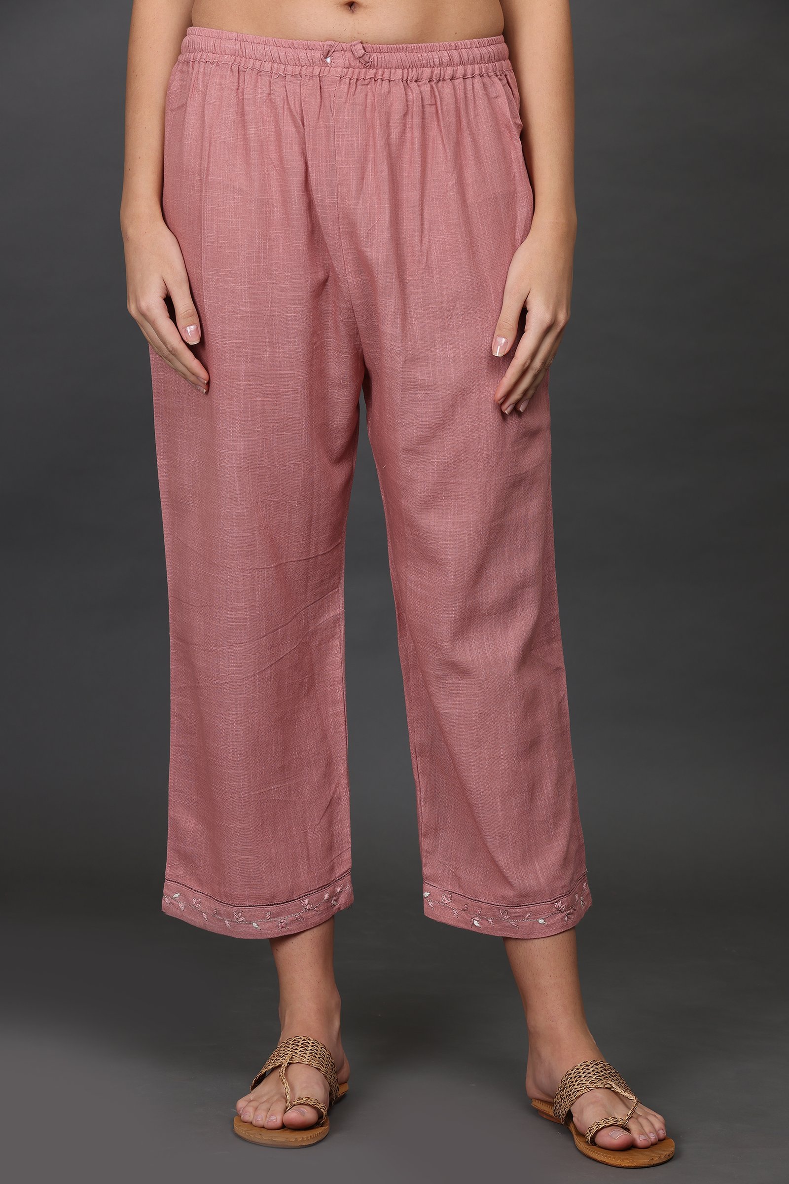 HAND THREAD EMBROIDERED CHAMBREY PANTS