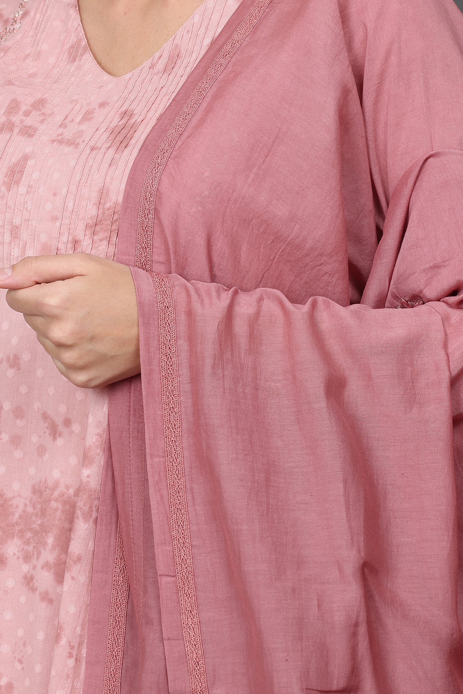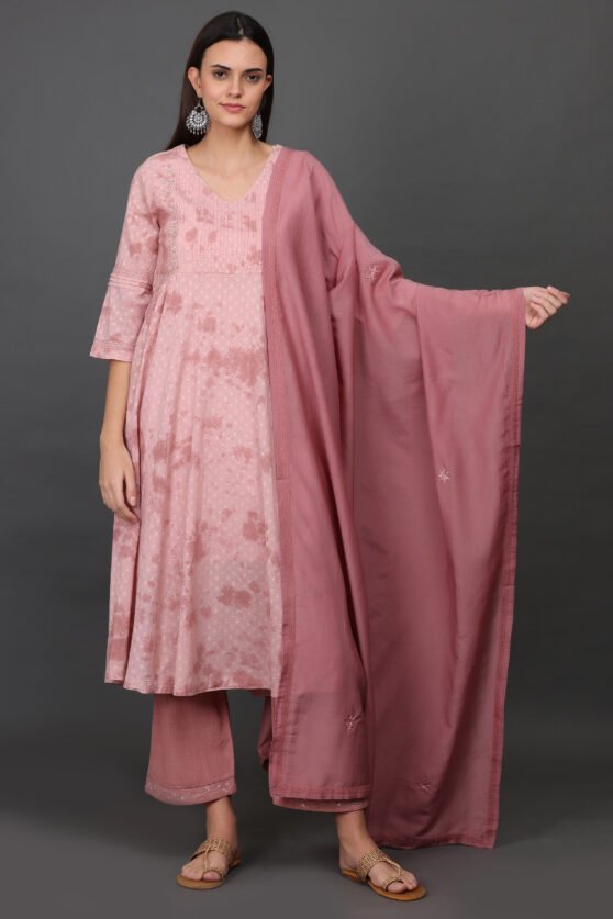Cotton dobby delicate aari/zardozi hand embroidered tied dye kurta with pintucks detailing, PANT & DUPATTA (SET of 3)