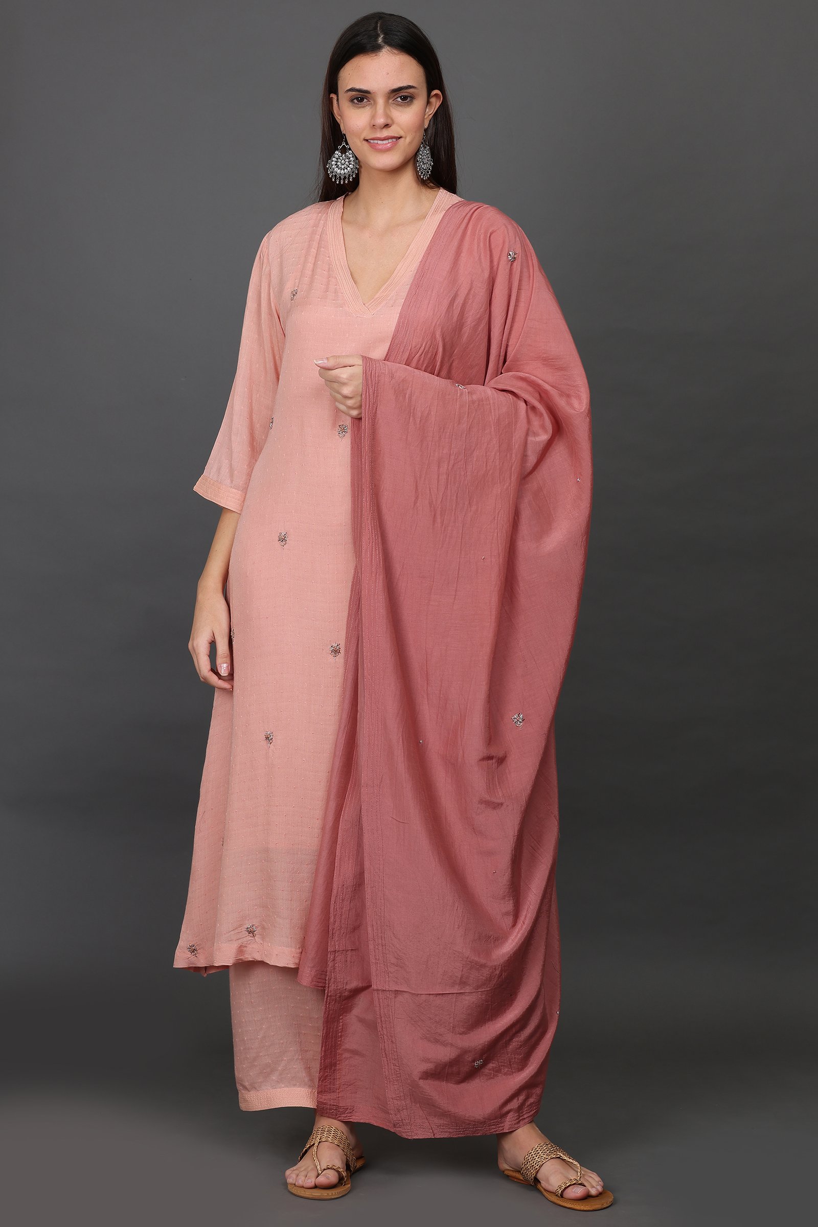 ANTIQUE ZARDOZI HAND EMBROIDERED KURTA, PANT & DUPATTA(SET of 3)