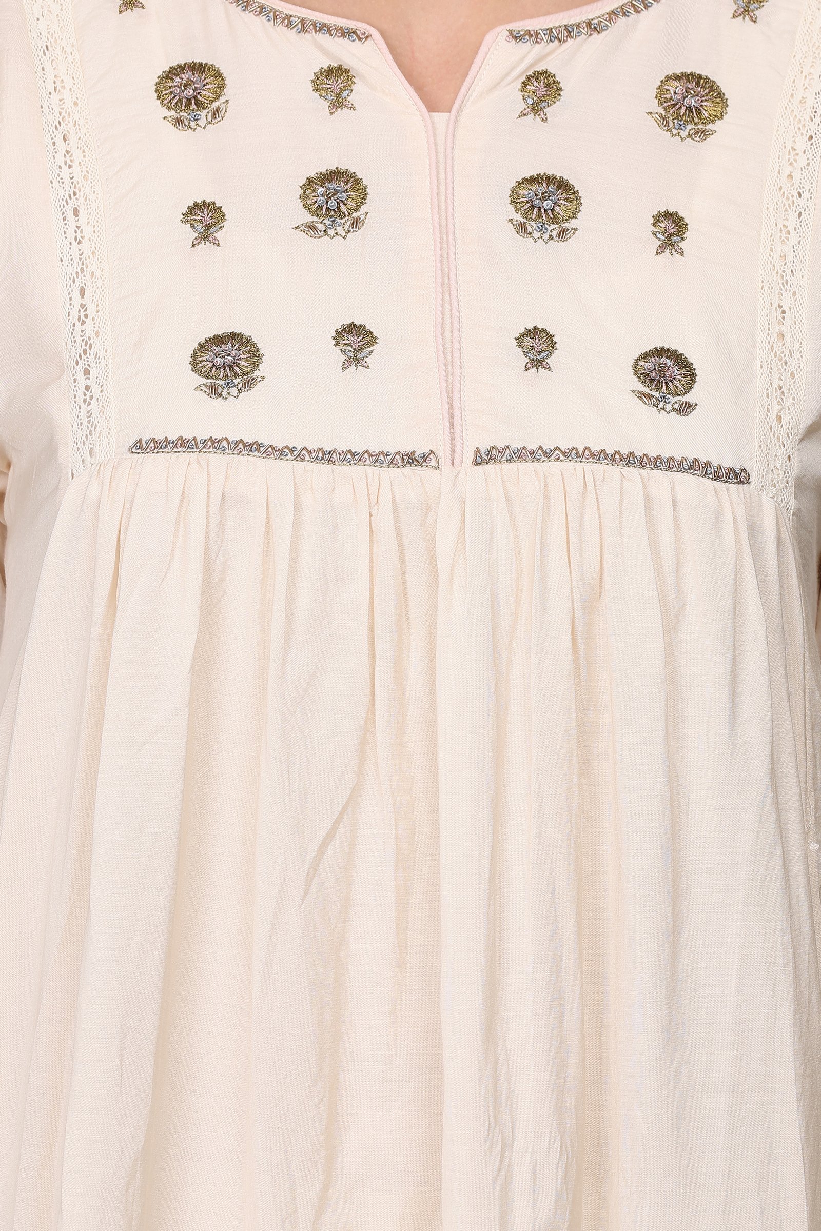 Description: fine cotton silk ANTIQUE heritage zardozi hand embroidered KURTA WITH LACE DETAILING AT YOKE , PINTUCKS AT SLEEVE
