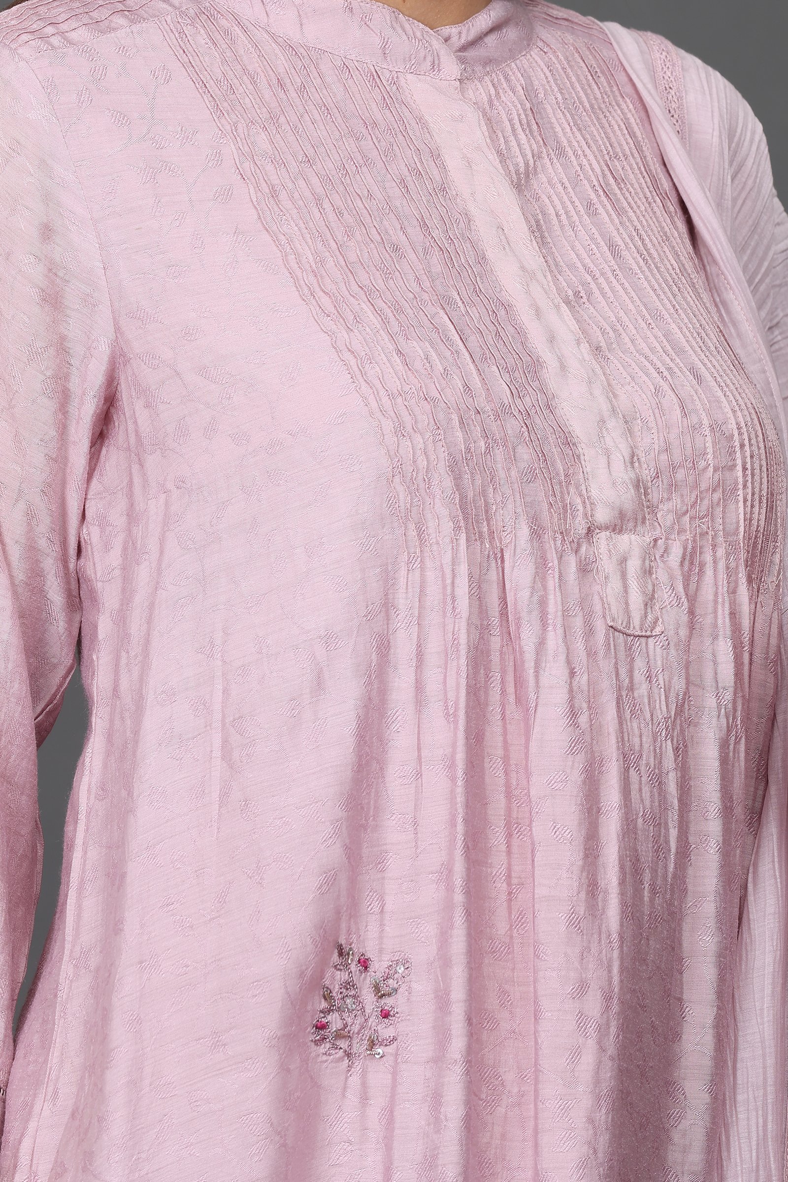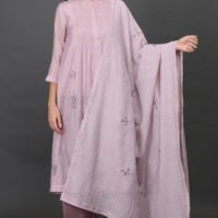 Description: DELICATE AARI TARI/ ZARDOZI HAND EMBROIDERED KURTA WITH PINTUCK DETAIL, PANT & DUPATTA(Set of 3)