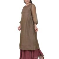 Cotton Silk Hand Smocked Kurta With Contrast Piping